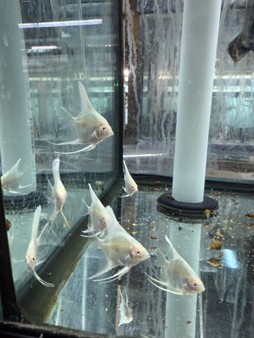 The Albino Angelfish (Pterophyllum scalare) is a selectively bred variant of the classic freshwater …